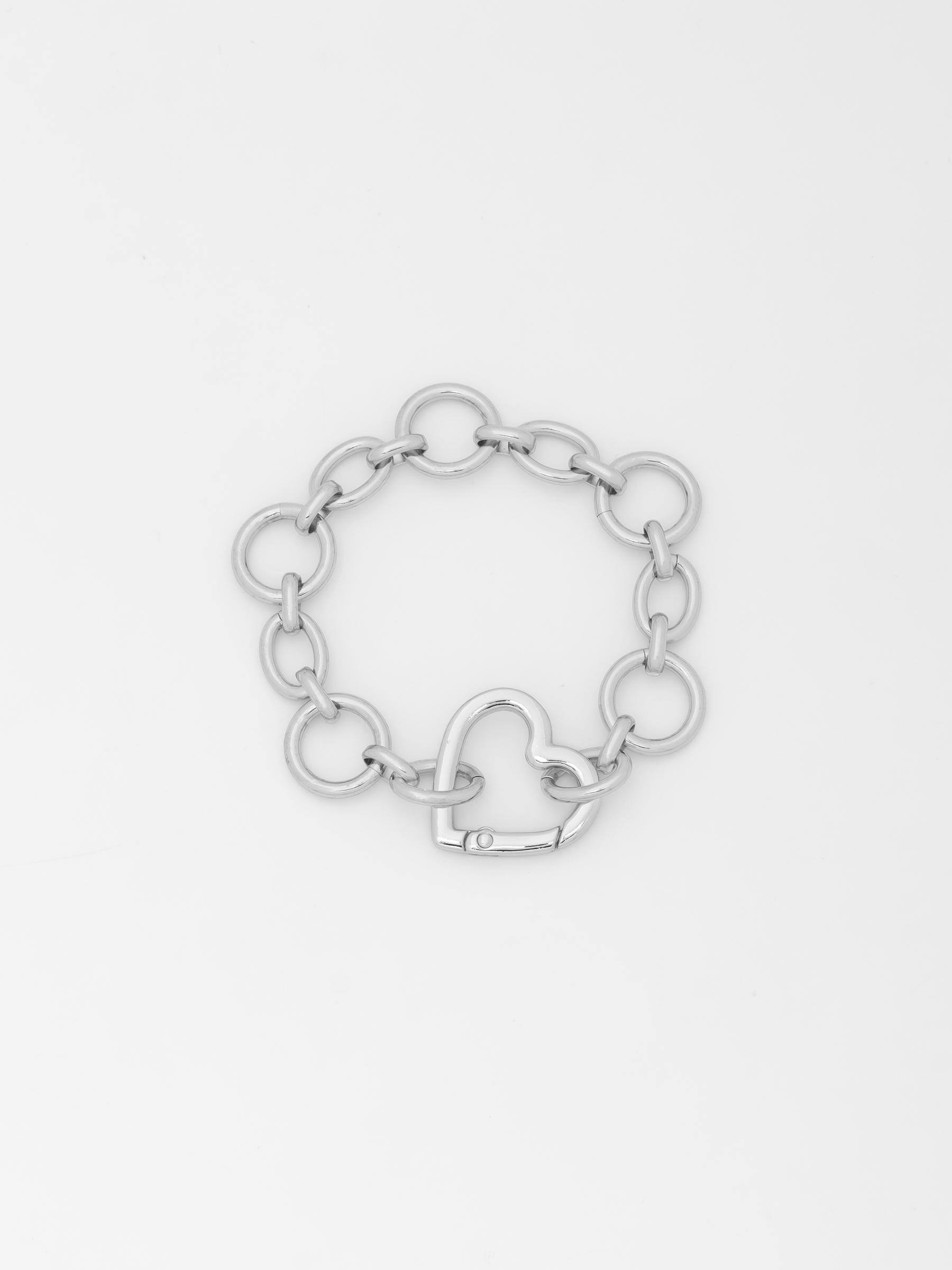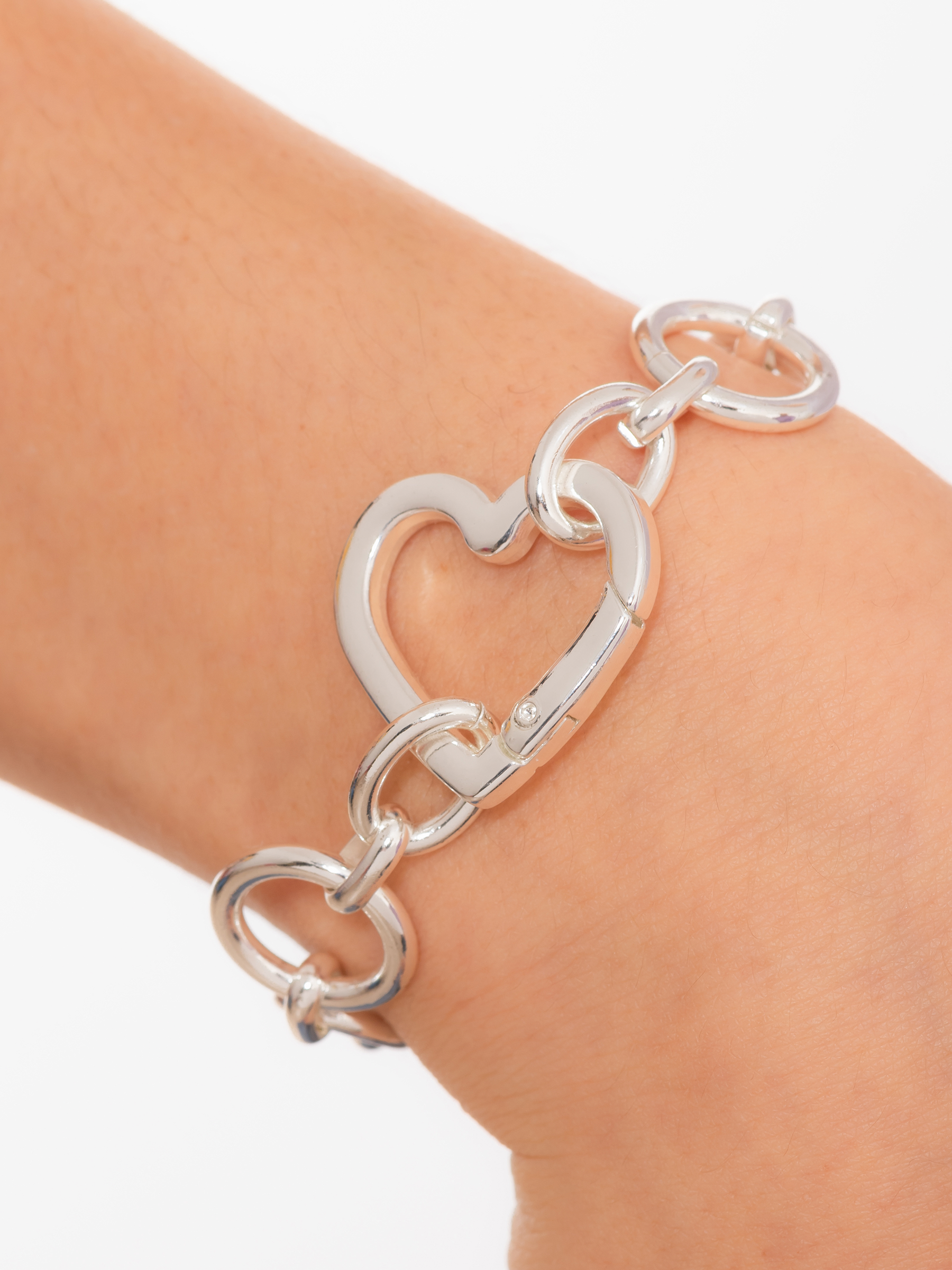 Ideal para quienes prefieren un estilo sobrio y elegante. Esta pulsera plateada con broche de corazón se adapta a cualquier ocasión, aportando un brillo sutil y un toque romántico a tu look.